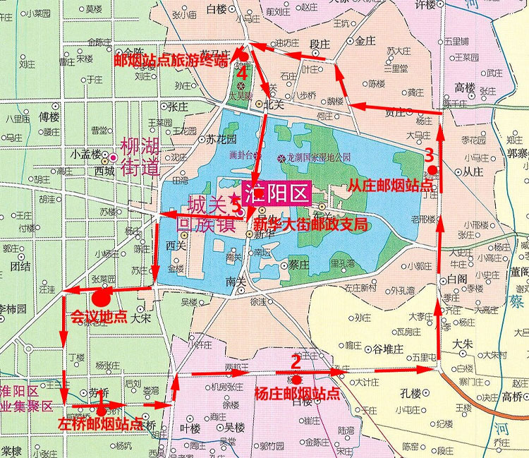 具体线路:邮烟站点旅游终端--从庄邮烟站点--新华街邮政支局--左桥邮烟站点--杨庄邮烟站点